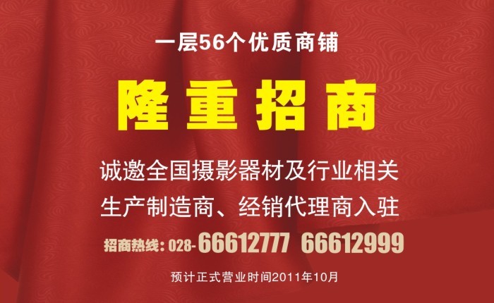 成都华凌西南婚纱摄影器材城一楼改扩建,面向专业相机、耗材、婚纱等摄影器材厂家、代理商、经销商全面招商,有意者请携带公司营业执照副本