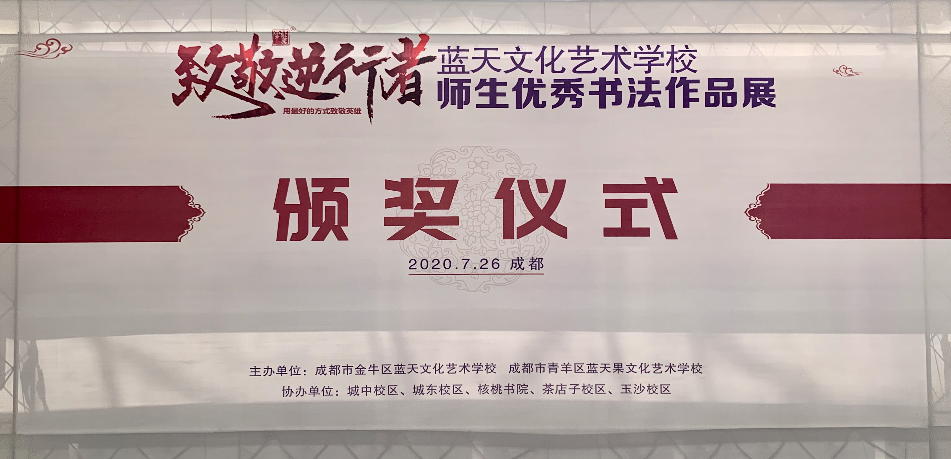 2020年7月26日,蓝天文化艺术学校“致敬逆行者”书画作品展览颁奖典礼活动在成都华凌西南婚纱摄影器材城二楼隆重举办。